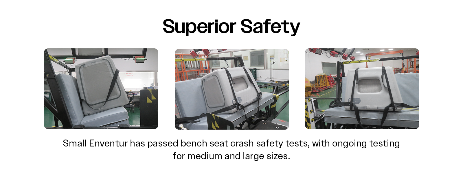Secure with built-in D-rings and Diggs Tie-Downs for safe car travel. Small size has passed bench-seat crash testing; Medium and Large testing in progress.