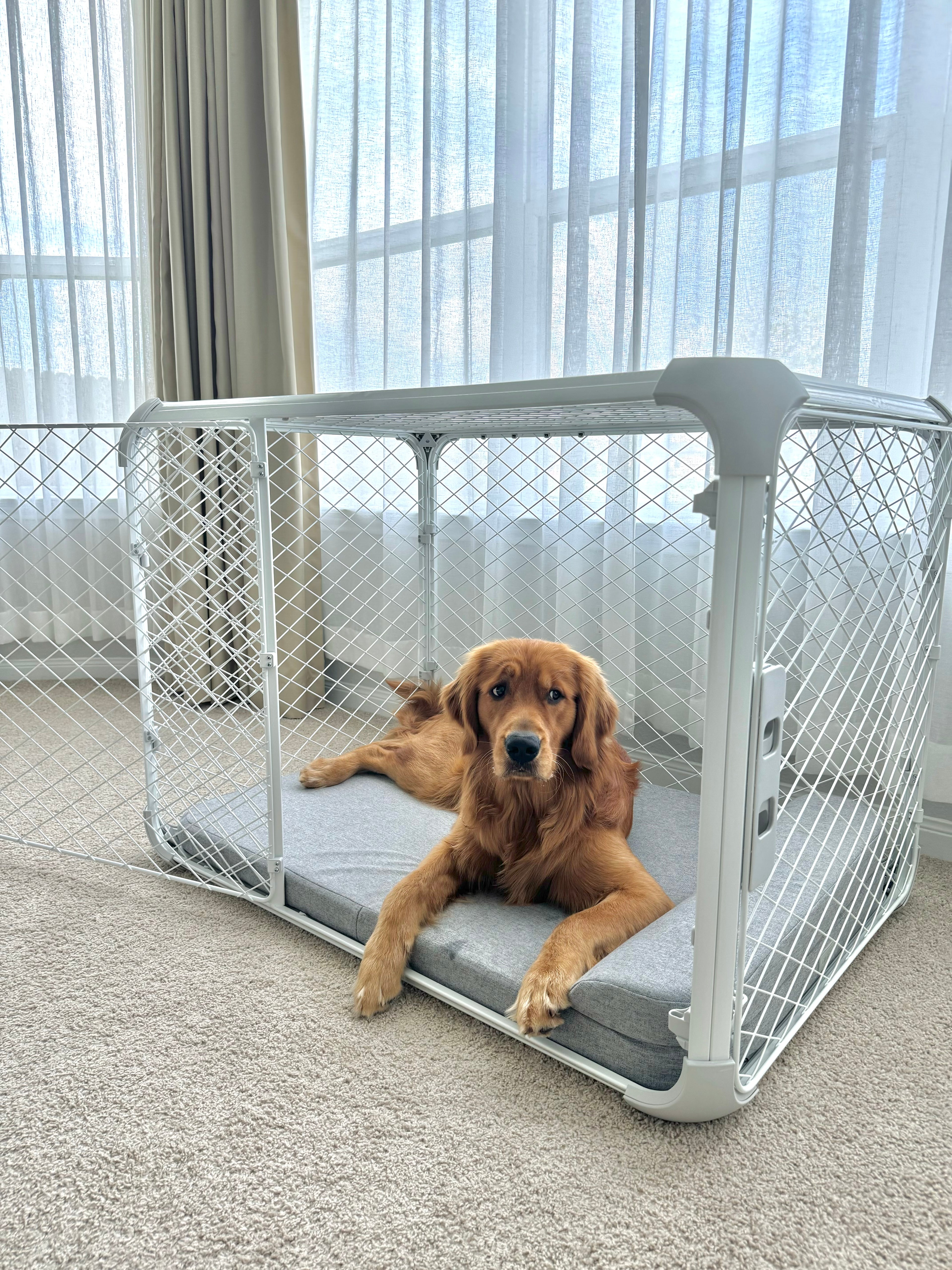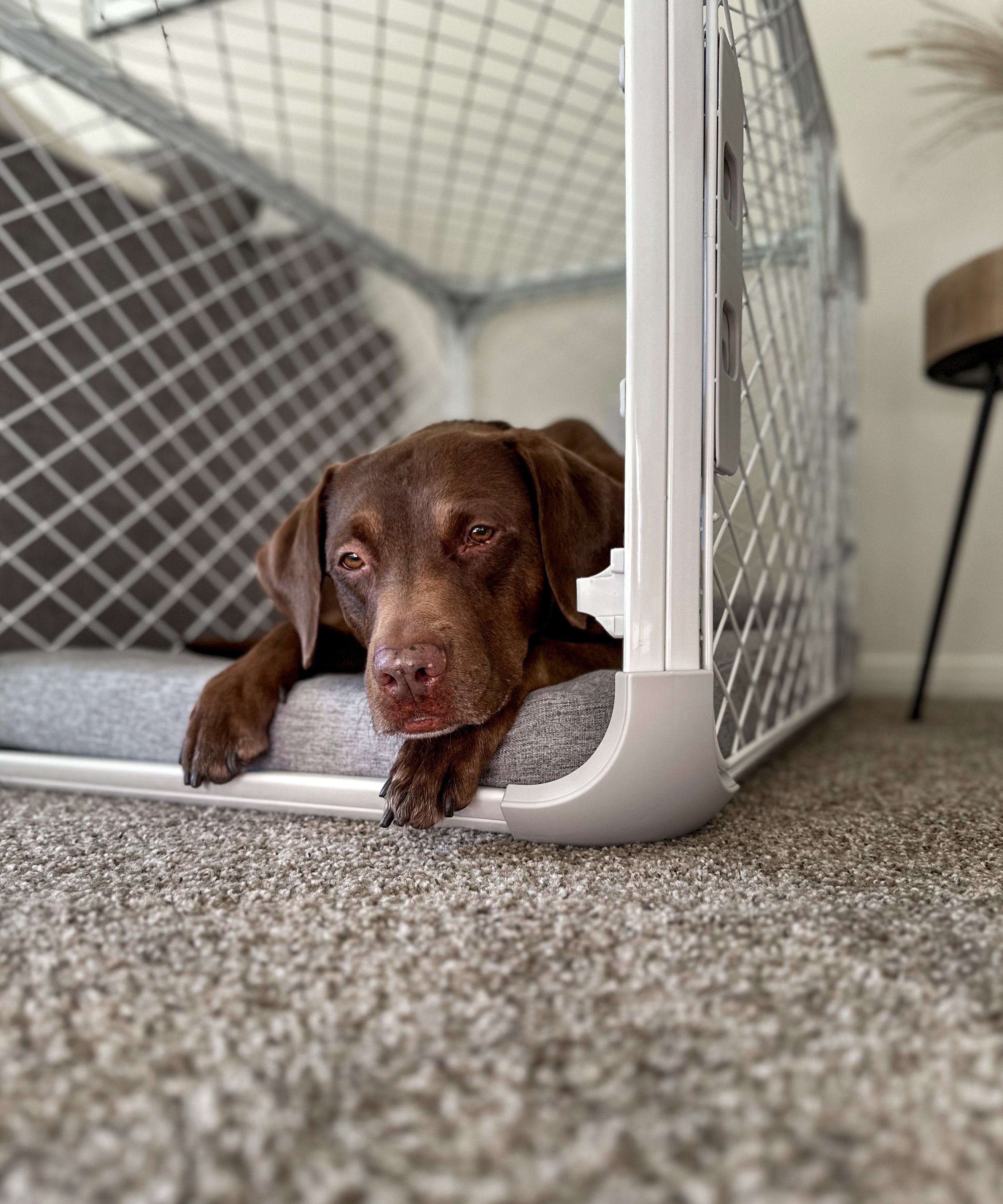 Featuring a bolstered headrest and cushioned base, Bolstr gives your dog a secure, cozy place to rest inside the Evolv crate.